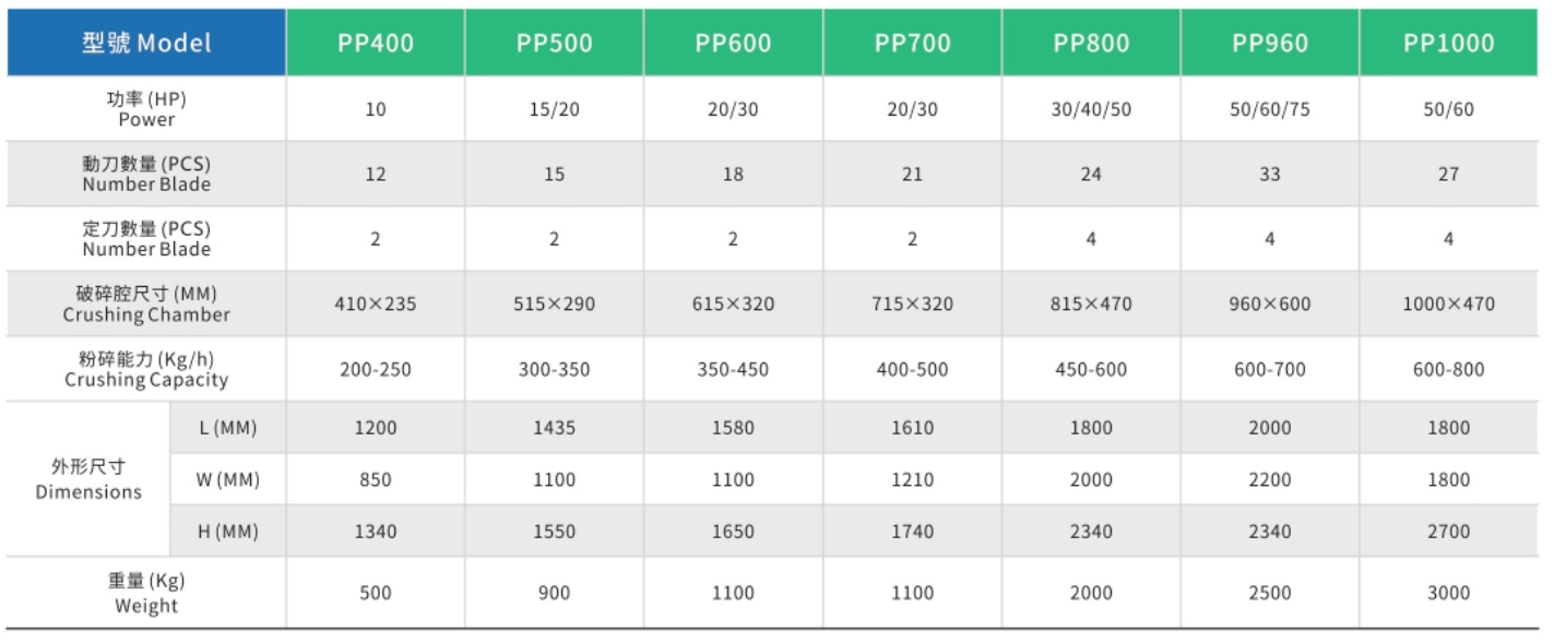 片型刀组结构介于爪刀和平刀之间,刀座经过热缩处理,破碎后的颗粒形状均匀;片刀适合破碎普通片材、管材、型材、板材及包装材料等塑胶制品;通用型塑胶粉碎机,采用密封轴承,使用轴承转动长时间保持良好,经济实用。