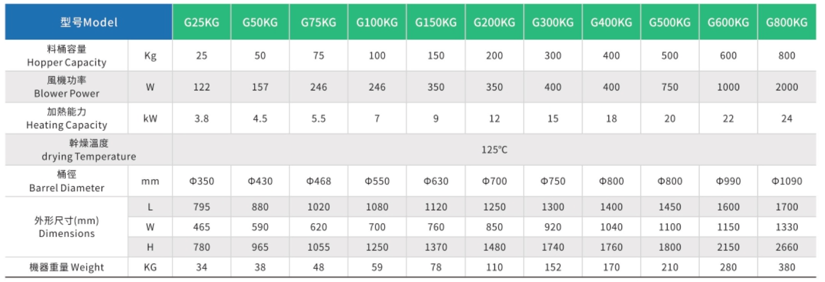 主要用于塑料颗粒的干燥。用高温热风处理各种潮湿的原料,使原料充分干燥,确保产品质量。