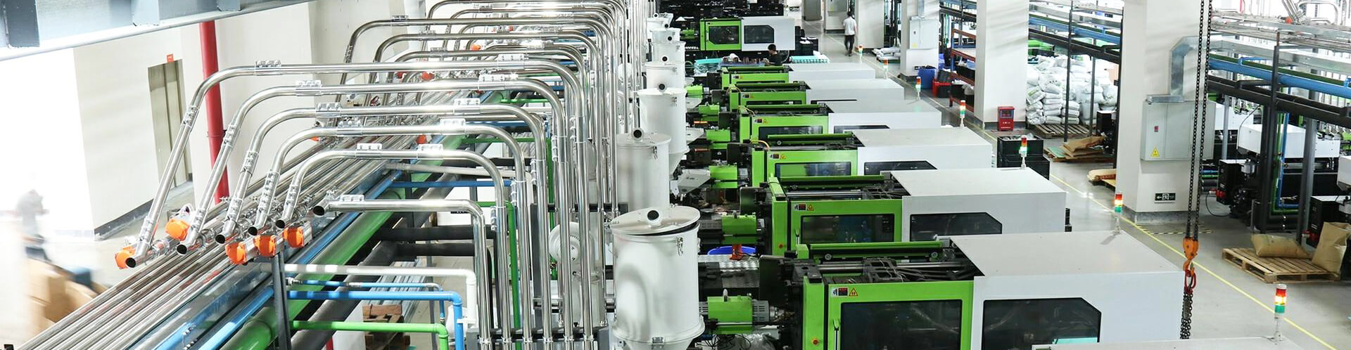 中央供料系统是根据客户现场机台的摆放情况和对现场原料的用料情况,结合特有辅机而设计的一种能够实现集中供料、集中控制,从而实现全厂无人化不间断成形作业的整体性解决方案。