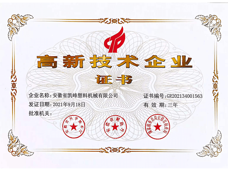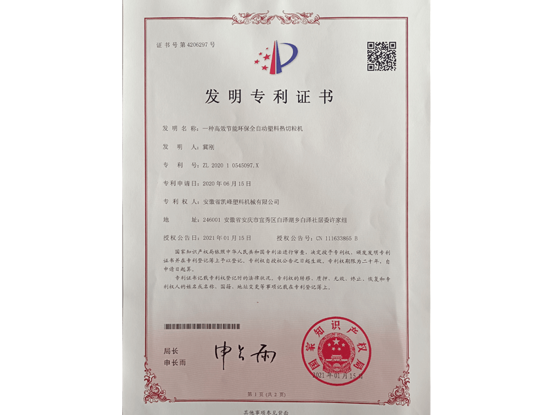 申请发明专利“高效节能环保全自动塑料热切粒机”;新增激光切割机、折弯机、钻铣机床等数控加工设备;成立新公司“安徽凯峰智能装备有限责任公司”