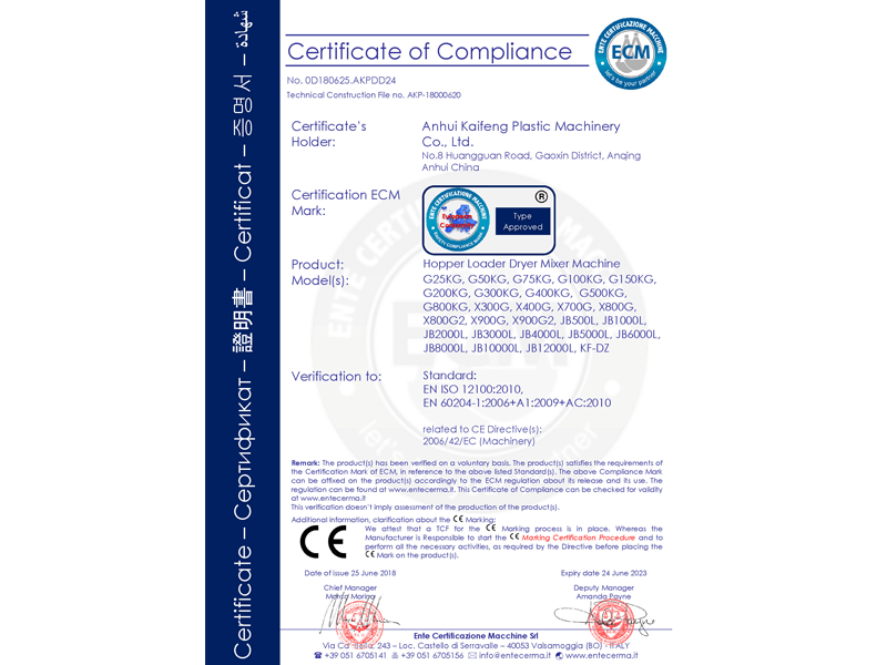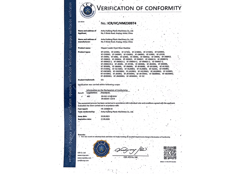 全系列产品获得欧盟CE认证;品牌重塑升级,注册“凯峰”商标,升级新LOGO