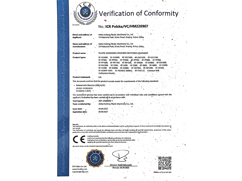 成功研发欧式重型塑料粉碎机系列麹倌聶貉躦櫈撕碎机系列设备;通过必维质量管理体系认证;