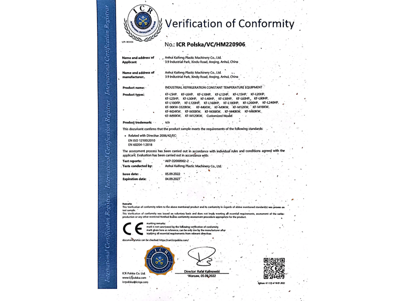 安徽省凯峰塑料机械有限公司是制造、销售和服务为一体的塑料辅助设备和工业温度控制领域的制造企业,是专业的工业冷水机厂家, 专业塑料破碎机厂家。 它依靠精良的制造经验, 实施质量控制, 责任制的管理机制, 严格执行ISO9001国际质量体系认证标准,以先进的生产技术, 使凯峰机械赢得了广大用户的信赖和支持, 产品广泛应用于塑料、医药、造纸、食品、化工、金属电镀、电子、光学、DVD光盘、纺织品、喷涂、镁合金压铸、橡胶、轮胎、挤出、民用等行业的设备。 生产的冷水机、塑料破碎机、模温机等多款产品远销印度、马来西亚、越南、新加坡、泰国等国家, 同时为国内外同行制造OEM产品。